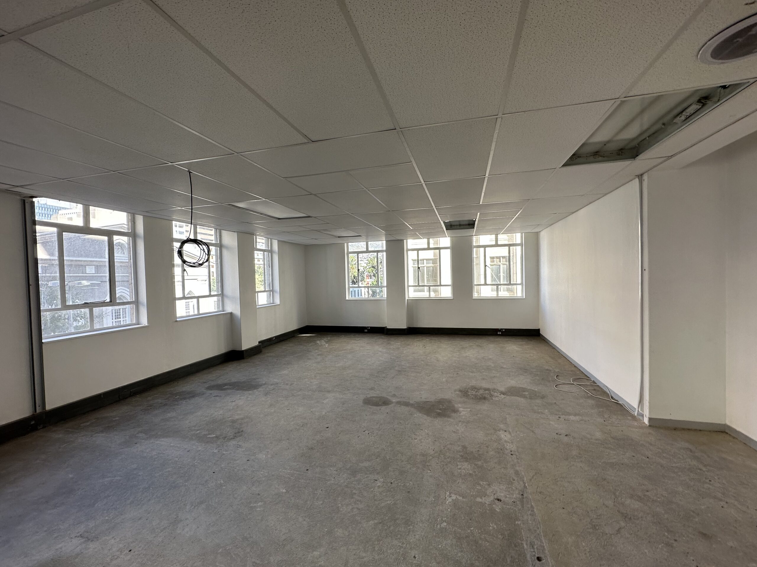 Parking is available in the building’s secure underground structure at R1,200 per bay. This is a key advantage in a high-density node where on-site parking is limited. The location also reduces reliance on private vehicles. The office sits within walking distance of Cape Town High Court and Company’s Garden, and close to Cape Town railway station and MyCiTi bus routes. Staff and clients can reach the building easily from across the city. The offices are practical and adaptable, suited to a variety of business types including professional firms, consultancies, and service‑based operations. Floor layouts can be configured to accommodate open‑plan work areas, private offices, or meeting rooms, allowing tenants to tailor space to their operational needs. Natural light and city views contribute to a productive working environment.