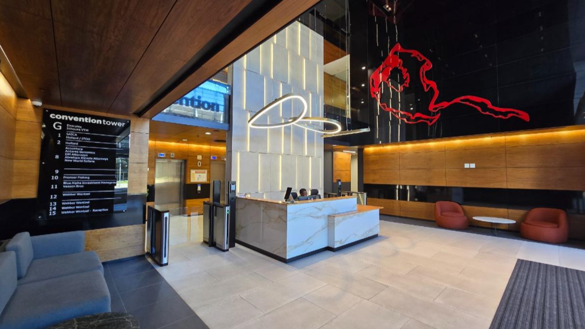 715 m² Office to Rent at the Convention Towers Foreshore. Modern A Grade office space located on the 10th floor. Fitted out offices with a reception area, meeting room, full kitchen as well as open plan area. Direct access from lifts to the office suite. The Building has 24 hour security with full access control. This office space has a small patio overlooking the Convention Center. Secure basement parking for tenants with direct access to parkade from the office. Ample visitor parking available in the area. The Convention Towers are located close to all main public transport routes in the city. Great location close to the N1 Highway access points. Convention Tower offers one of the best locations in Cape Town’s CBD. Situated in the vibrant Foreshore suburb, the building is close to major highways and freeways, allowing easy access to the rest of the city and beyond. Whether your team commutes from the southern suburbs, northern suburbs, or surrounding areas, the building’s proximity to transport routes makes getting to the office a breeze.